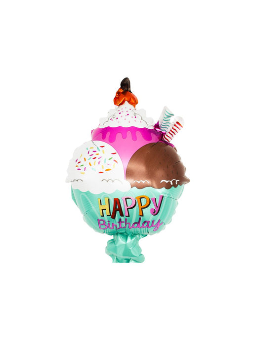 Globo Mini en forma de Helado, incluye la frase "Happy Birthday" Medida: 10" Material: Foil Incluye: 1 Pieza