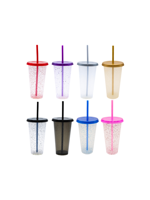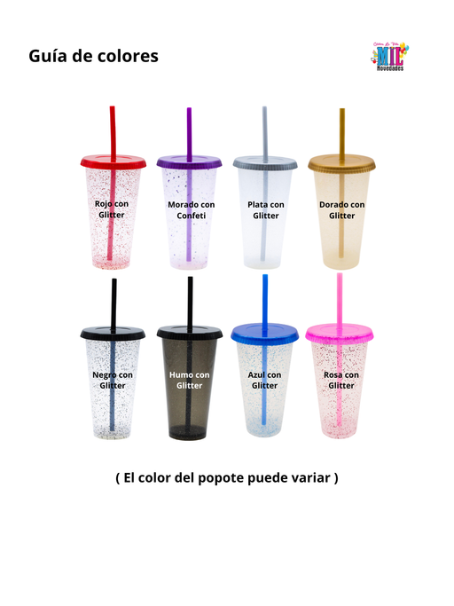 Vaso Venti con Glitter Capacidad: 24 oz Material: Plástico Medida: 7x18cm El Color Del Popote Puede Variar