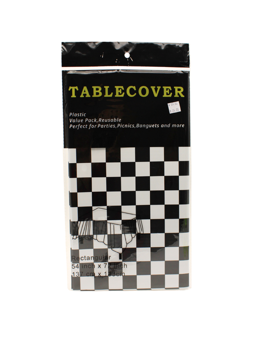 Mantel Rectangular con diseño de cuadros Características: Medida: 1.37 m x 1.83 m Material: Plastico Delgado Color: Blanco y negro Cantidad: 1 P...