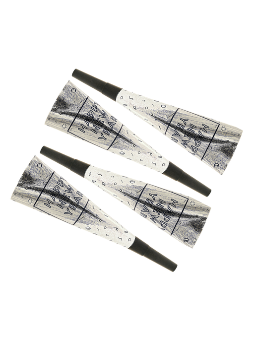 Ver todos los detallesPaquete de cornetas festivas ideales para celebrar Año Nuevo, cada corneta esta decorada con la frase “Happy New Year” y detalles festivos Caracter...
