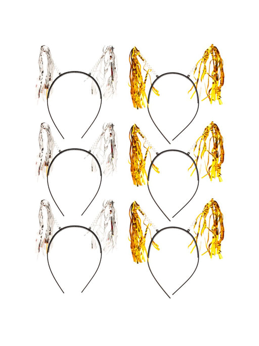 Ver todos los detallesPaquete con 12 diademas con motitas Características: Cada diadema cuenta con 2 motitas Colores: Dorado y Plateado Material: Plástico Cantidad: ...