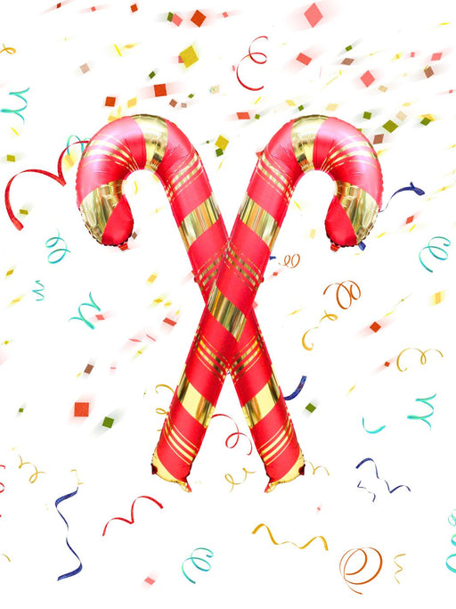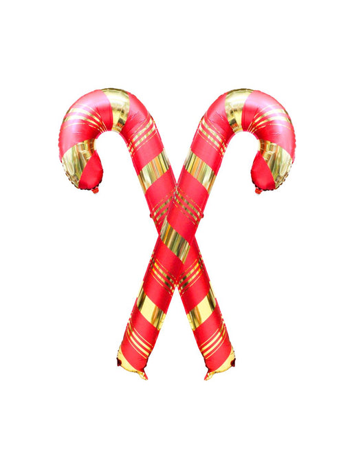 Globo con forma de baston de caramelo Características: Color rojo con acabdo mate Detalles con acabcado doraro metálico Medida aproximada: 50" Med...