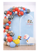 El set incluye globos en color blanco, rojo, azul y cafe, ademas de diseños impresos y figuras decorativas