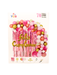 El set incluye globos en tonos dorado, salmon, rosa, rosa pastel y blanco, ademas de elementos para tener una decoración completa