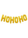 Set de globos metálicos que forman la frase "HOHOHO", cada letra está fabricada en material foil, con acabado dorado luminoso que resalta a la perfección en cualquier pared