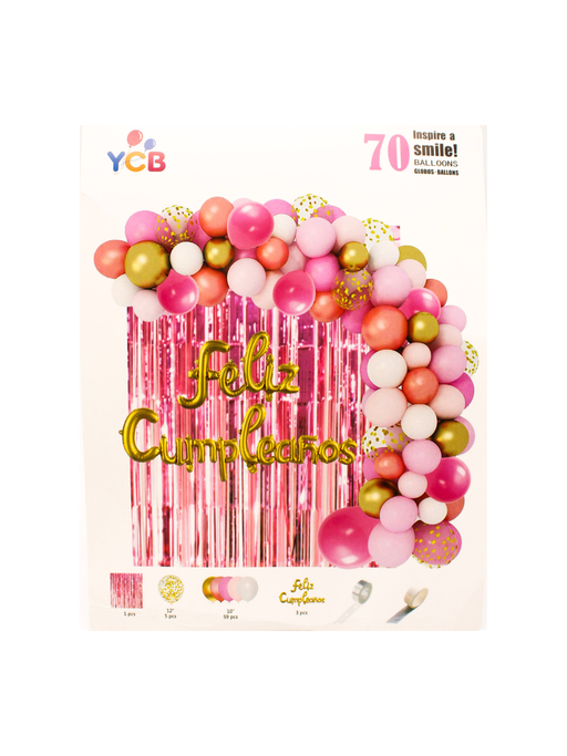 Ver todos los detallesEl set incluye globos en tonos dorado, salmon, rosa, rosa pastel y blanco, ademas de elementos para tener una decoración completa Características: ...