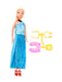 Esta muñeca está inspirada en la princesa Elsa, luciendo un hermoso vestido azul con detalles brillantes que evocan un estilo mágico y elegante