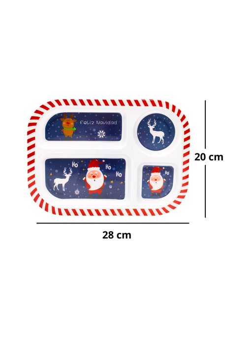 Ver todos los detallesPlato con 4 divisiones navideño ideal para colocar postres, galletas, dulces o incluso diferentes tipos de alimentos Características: Material: Me...