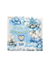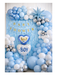 El set incluye globos en color blanco, azul y dorado, ademas de diseños impresos y figuras decorativas