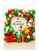 El set incluye globos en tonos tradicionales de Navidad: rojo, verde, dorado y diseños impresos tipo caramelo, además de figuras decorativas como bastones, regalos, estrellas y globos metálicos