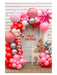 El set incluye globos en tonos rojo, rosa, plateado y diseños impresos tipo caramelo, además de figuras decorativas como bastones, estrellas y globos metálicos