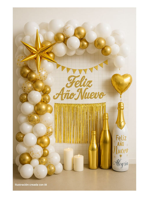 Ver todos los detallesEl set incluye globos en tonos blanco y dorado, además de figuras decorativas como estrellas y globos metálicos Características: Incluye: 1 Cort...