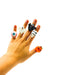 Esta caja incluye 12 anillos con diferentes personajes de Halloween, perfectos para regalar en fiestas, dar como recuerditos o completar disfraces