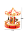 Carrusel decorativo con tonos rojo, dorado y blanco, incluye figuras de caballitos que hacen referencia a las ferias clásicas. Cuenta con iluminación integrada que realza su diseño y crea un ambiente cálido y festivo.