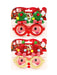 Lentes navideños. decorados con dos arbolitos de Navidad con pompones de colores, moños rayados y estrellas rojas brillantes