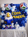 - 35 Globos de latex de 10" en tonos como azul, blanco, plata y blanco con puntos negros